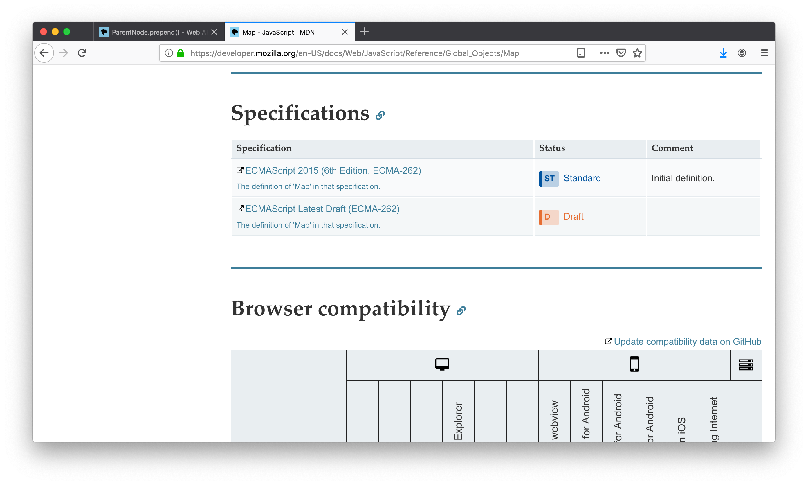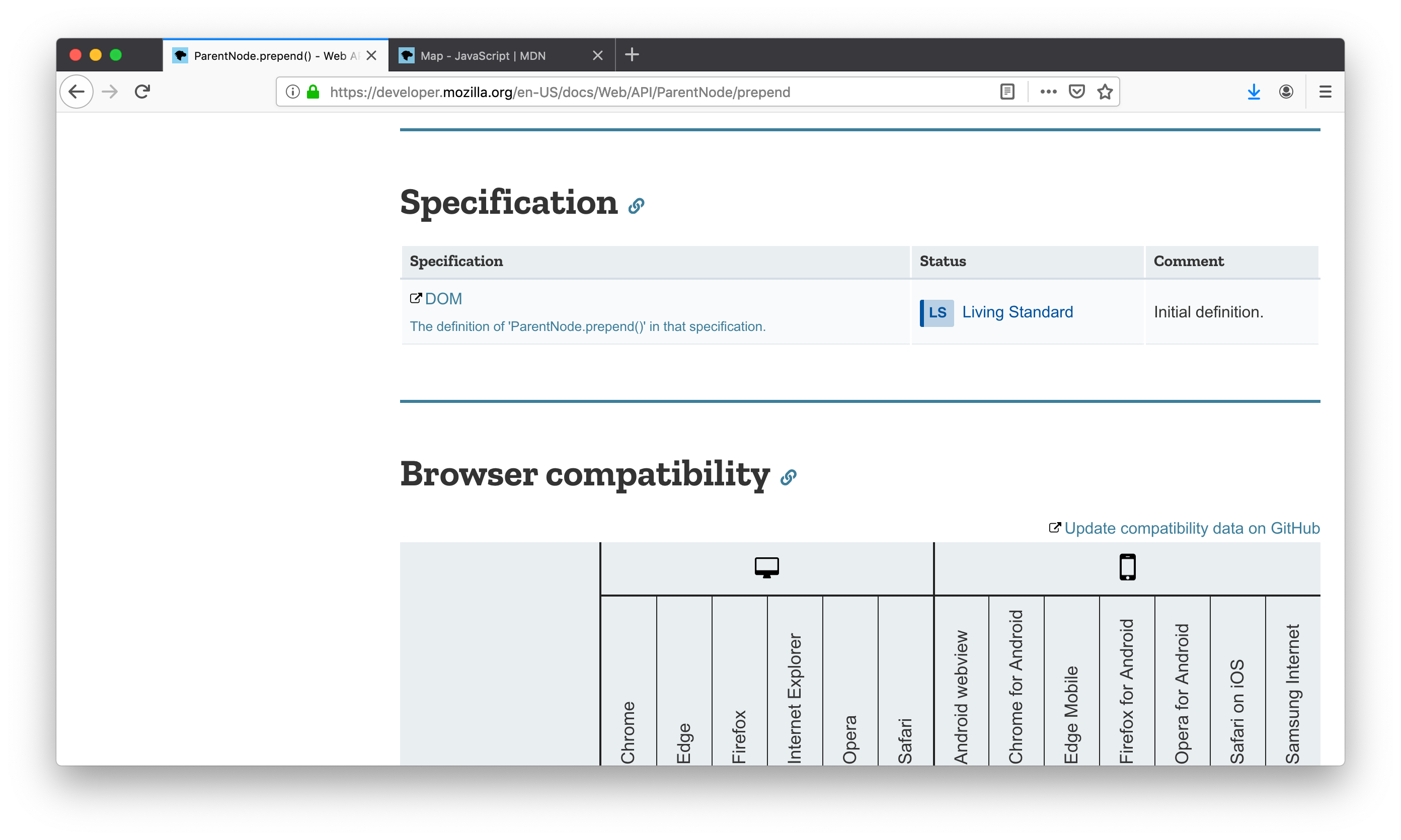 On the other hand, if you take a look at prepend() on MDN, you'll see that is it apart of the DOM, meaning that it is a Web API. In this case, prepend() will not be transpiled by Babel.